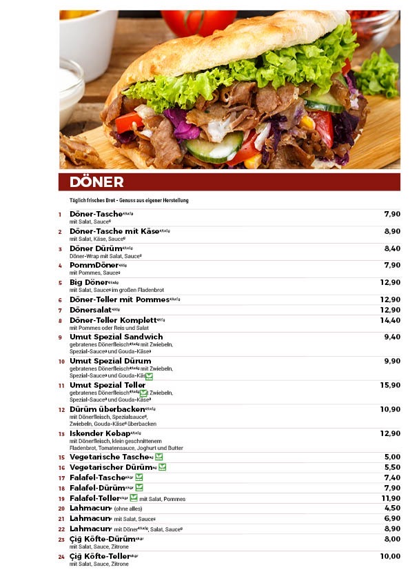 Umut Döner Menu